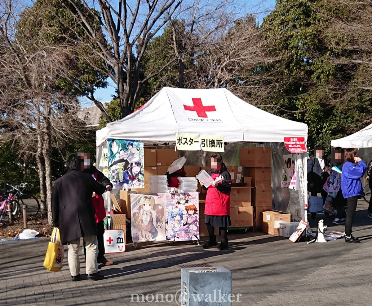写真ではわかりにくいですが、ポスター引換所が献血車と少し離れていてます。
