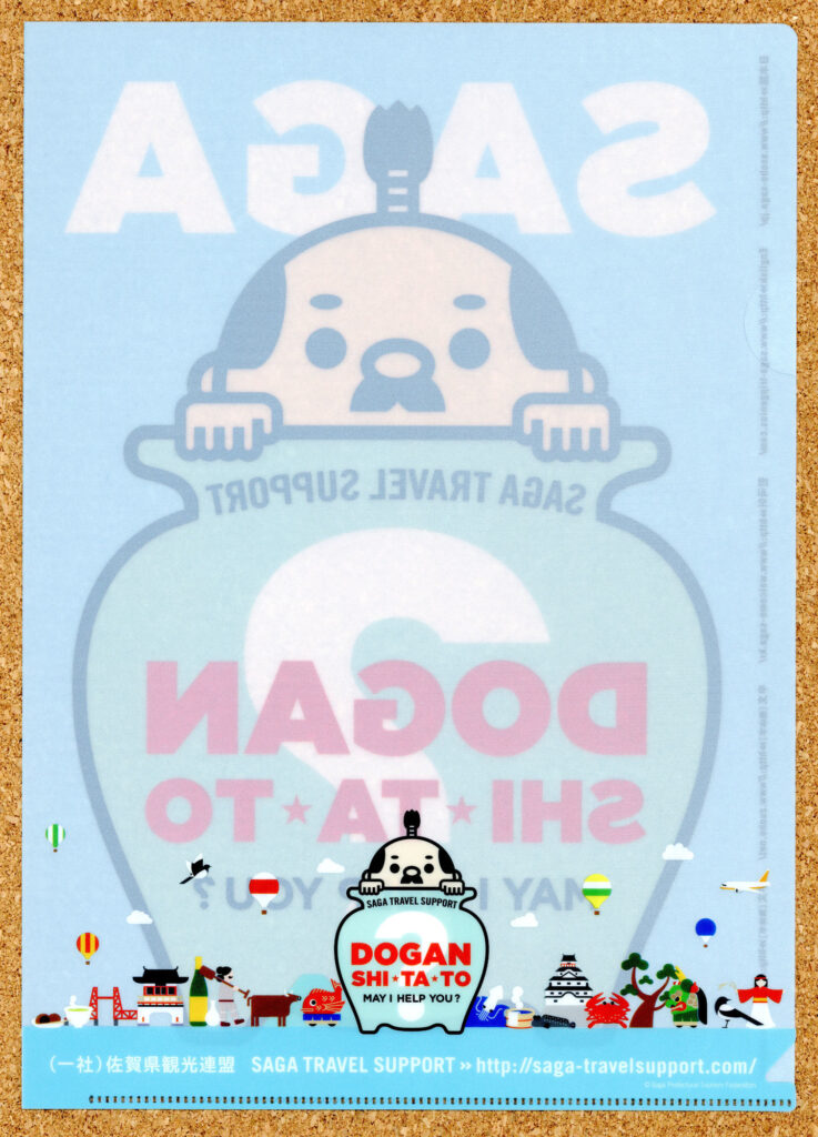 九州エリアの中にあった佐賀県ブースでもらった『 佐賀県 壺侍 DOGAN SHI★TA★TO 』のクリアファイルです。何とも可愛らしいデザインです。