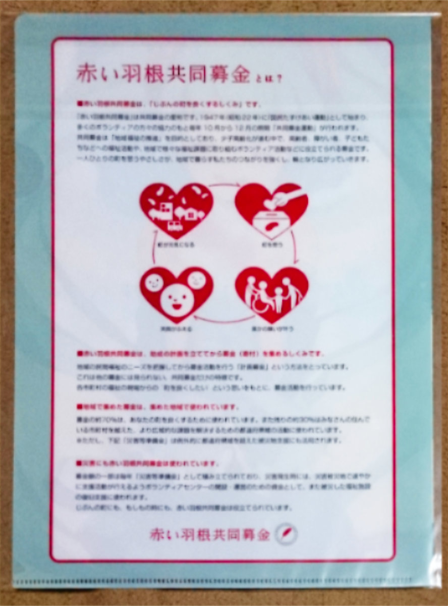 赤い羽根共同募金のクリアファイルは各地域で個別に制作されていたりもするので、まあチャンスがあれば入手しようかと思います。