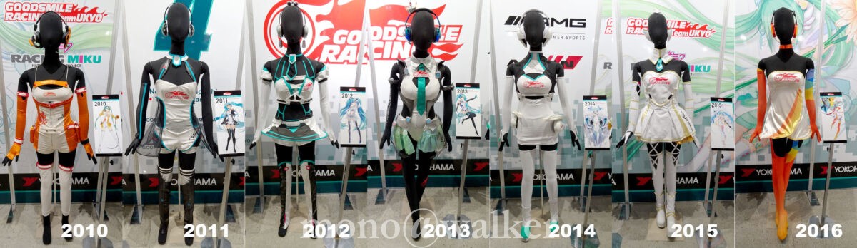 2008年から始まってはいるのですが、2008年と2009年はレーシングミクという形にはなっていなくて、初音ミクのスポンサード的な位置づけなので衣装がありません。