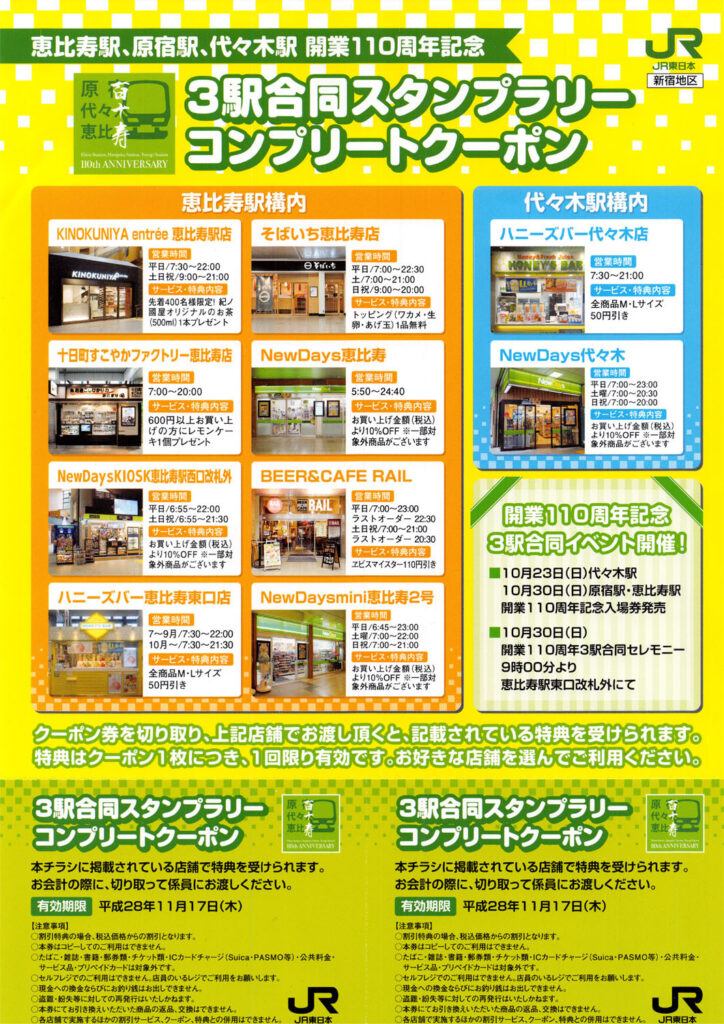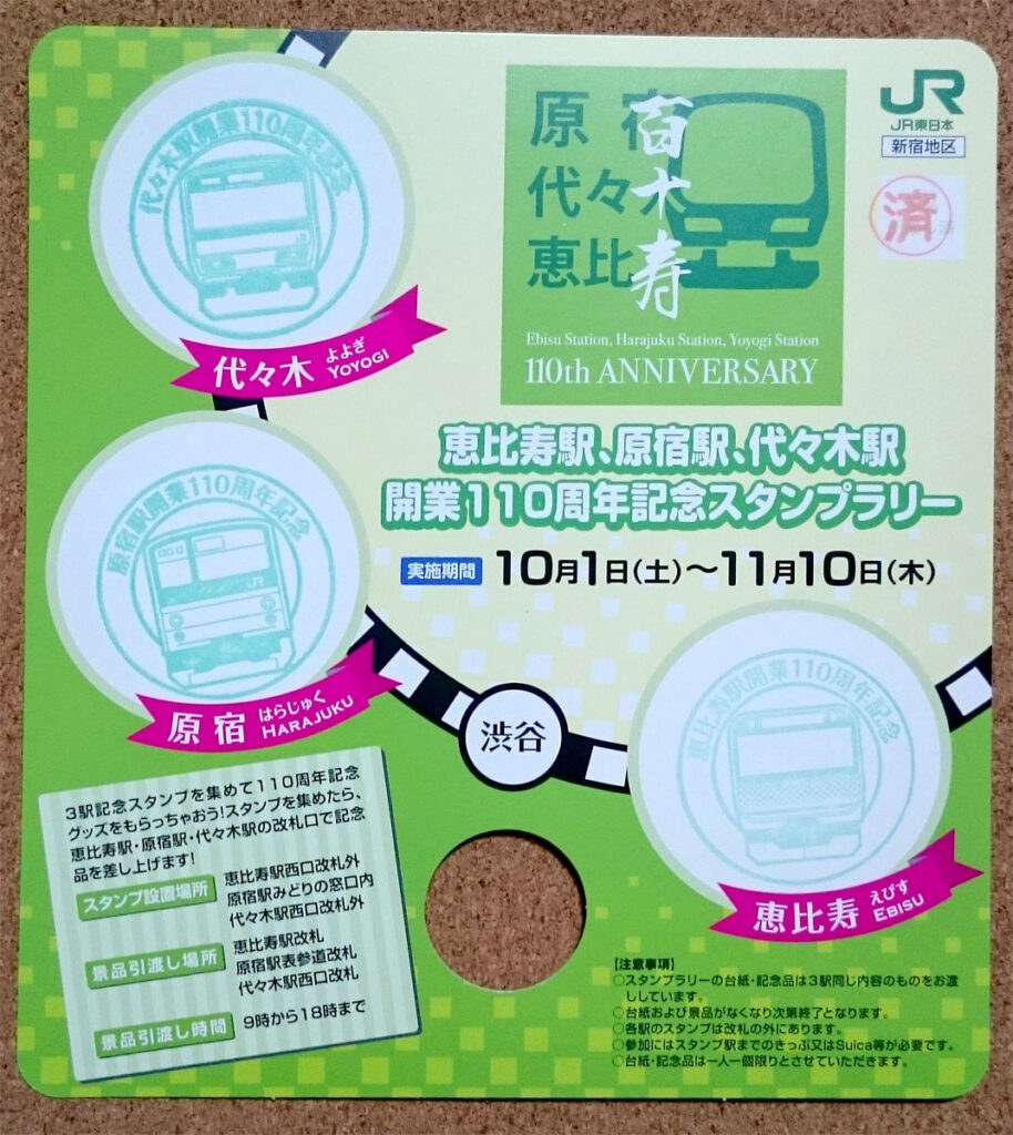 そこで恵比寿駅・ 開業110周年 を記念に際して3駅合同のスタンプラリーが開催されました。