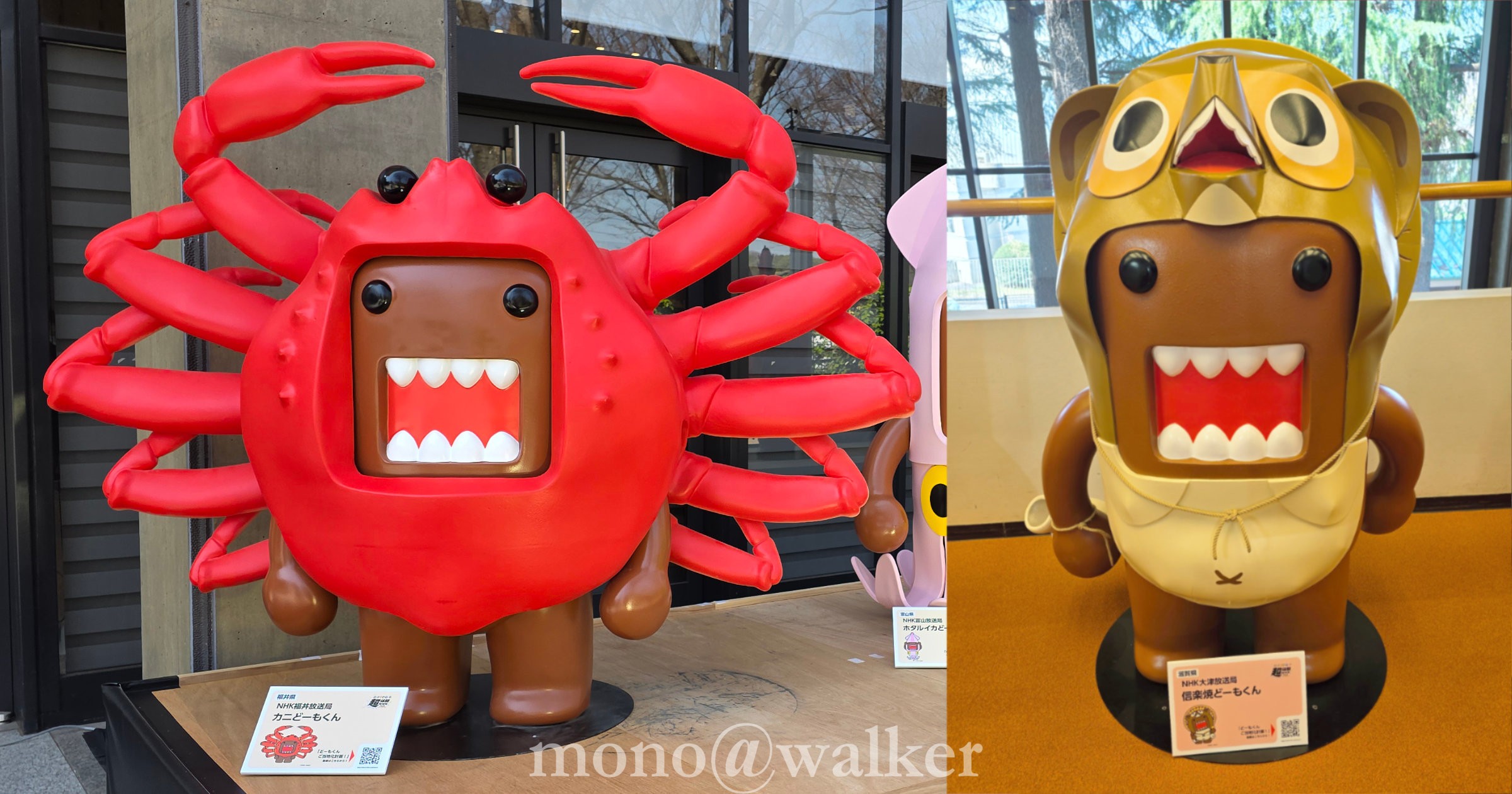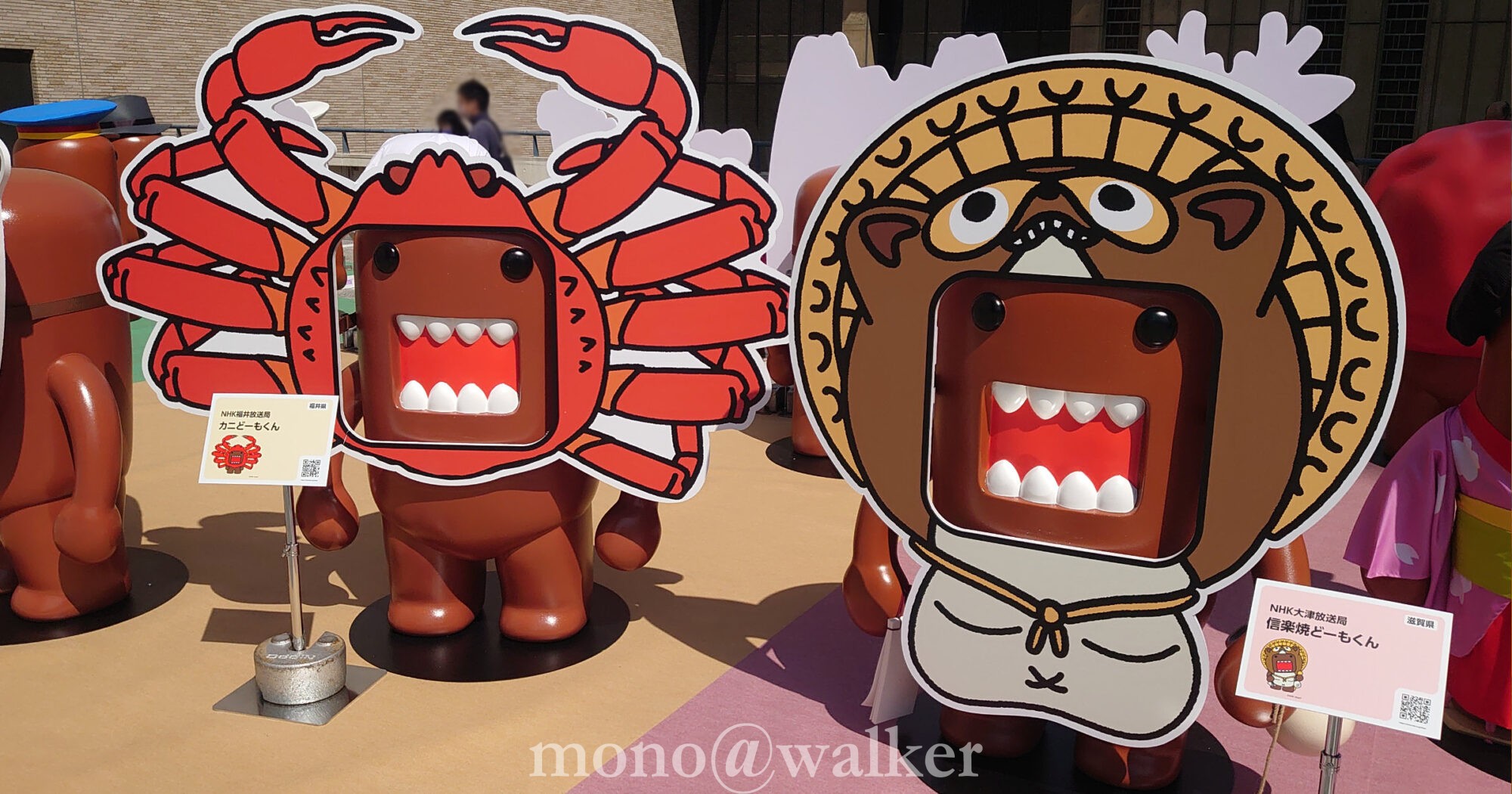 福井放送局のカニどーもくんは着ぐるみ感があっていい感じです。対して大津放送局の信楽焼どーもくんは着ぐるみと言うよりはタヌキスーツの様な出で立ちです。