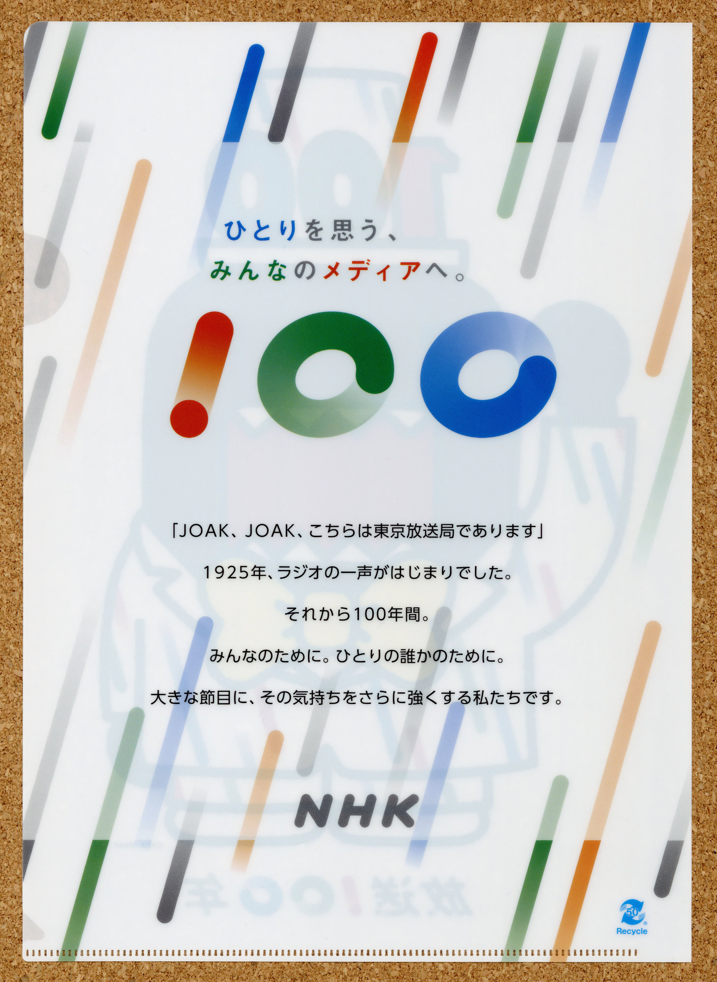 最後はエントランスでNHKプラスの登録とアンケートの回答で「NHK放送100年」のクリアファイルがもらえました。