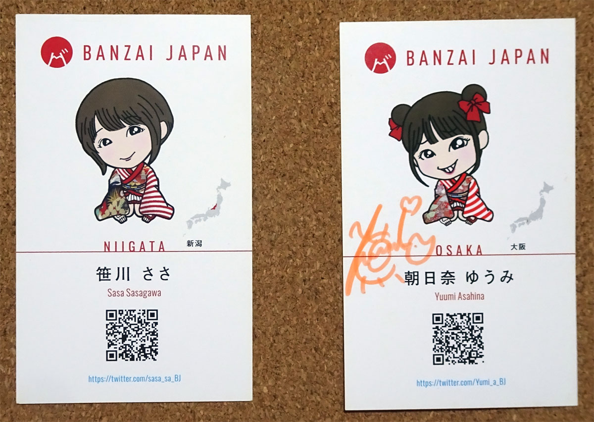 BANZAI JAPAN バンザイジャパン ネームカード 名刺 笹川ささ 朝日奈ゆうみ