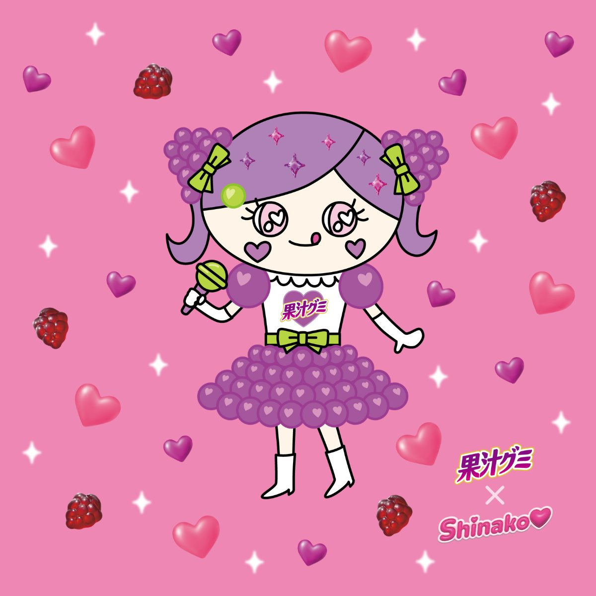 キャンペーンに合わせてしなこさんが果汁グミをイメージした「しなこぶどう姫」をデザインしています。