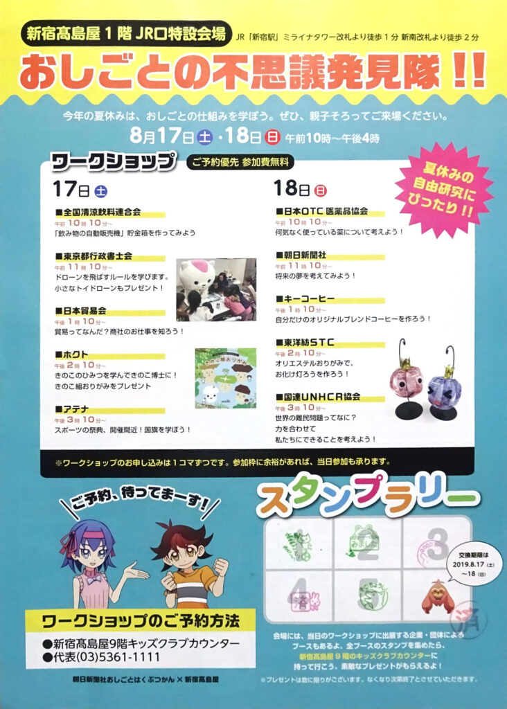 朝日新聞 おしごと年鑑 クリアファイル おしごとはくぶつかん チラシ スタンプラリー 新宿高島屋 ワークショップ