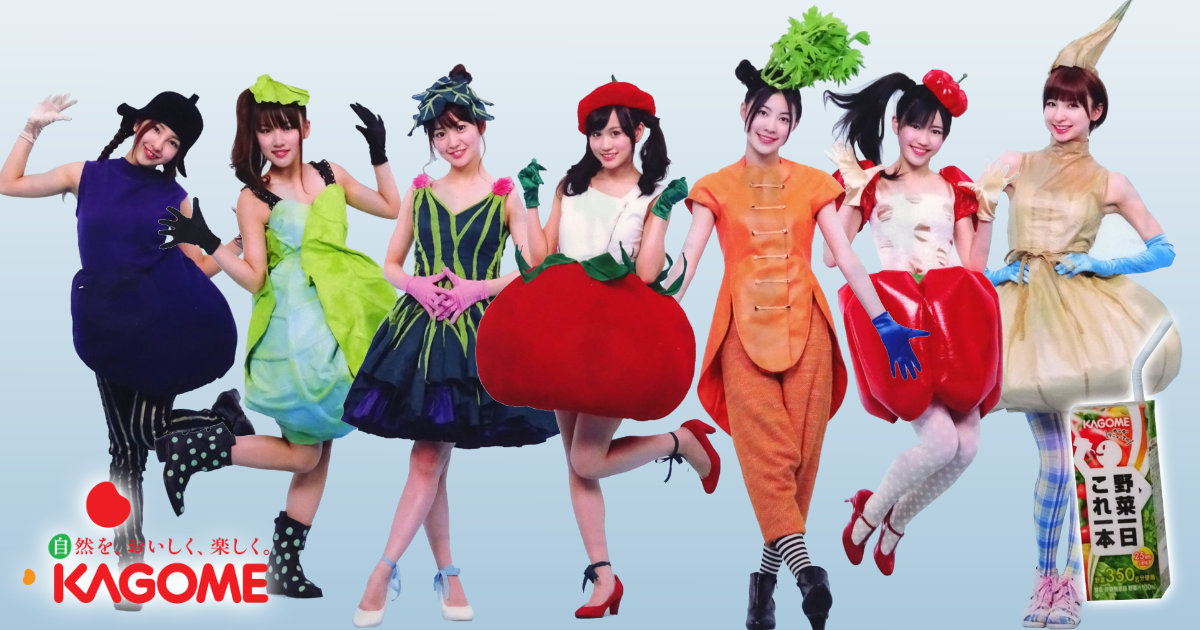 以前に紹介したカゴメとAKB48のコラボユニット『 AKB48 野菜シスターズ 』は2010年からカゴメのCMやイベント・キャンペーンなどに登場しています。