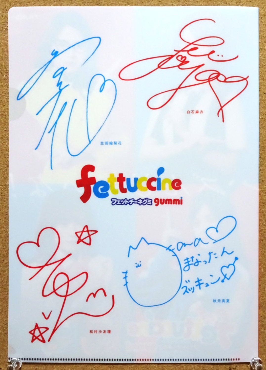 教師に扮するメンバーがそれぞれ「フェットチー姉さん」として登場するCMが6月頃から放送が始まりました。なのでその付近なので6~7月頃に入手したのだと思います。