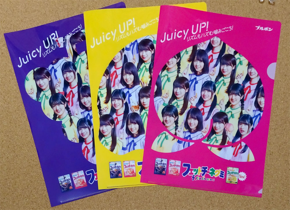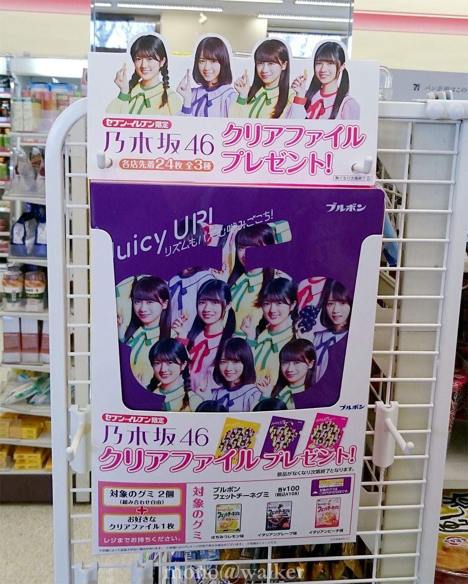 PRキャラクターに『 乃木坂46 』を起用したものでグミを2個買うとクリアファイルが貰えます。