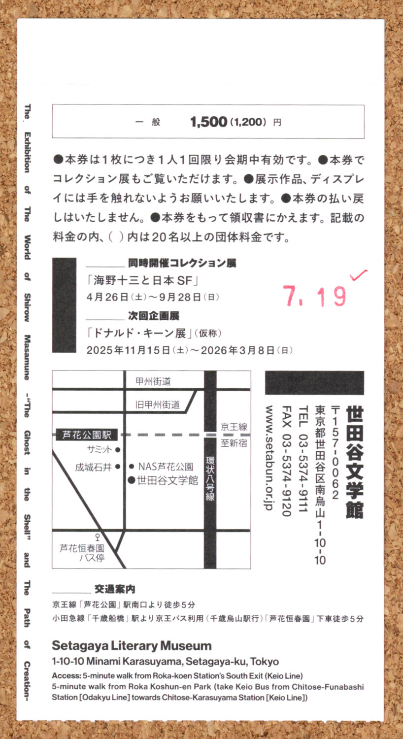 お出掛けの目的は開催されていた「 士郎正宗の世界展 〜「 攻殻機動隊 」と創造の軌跡〜 」を見るためでした。展覧会の会期は2025年4月12日(土)〜8月17日(日)と約4ヶ月ほどと、わりと長めの開催です。