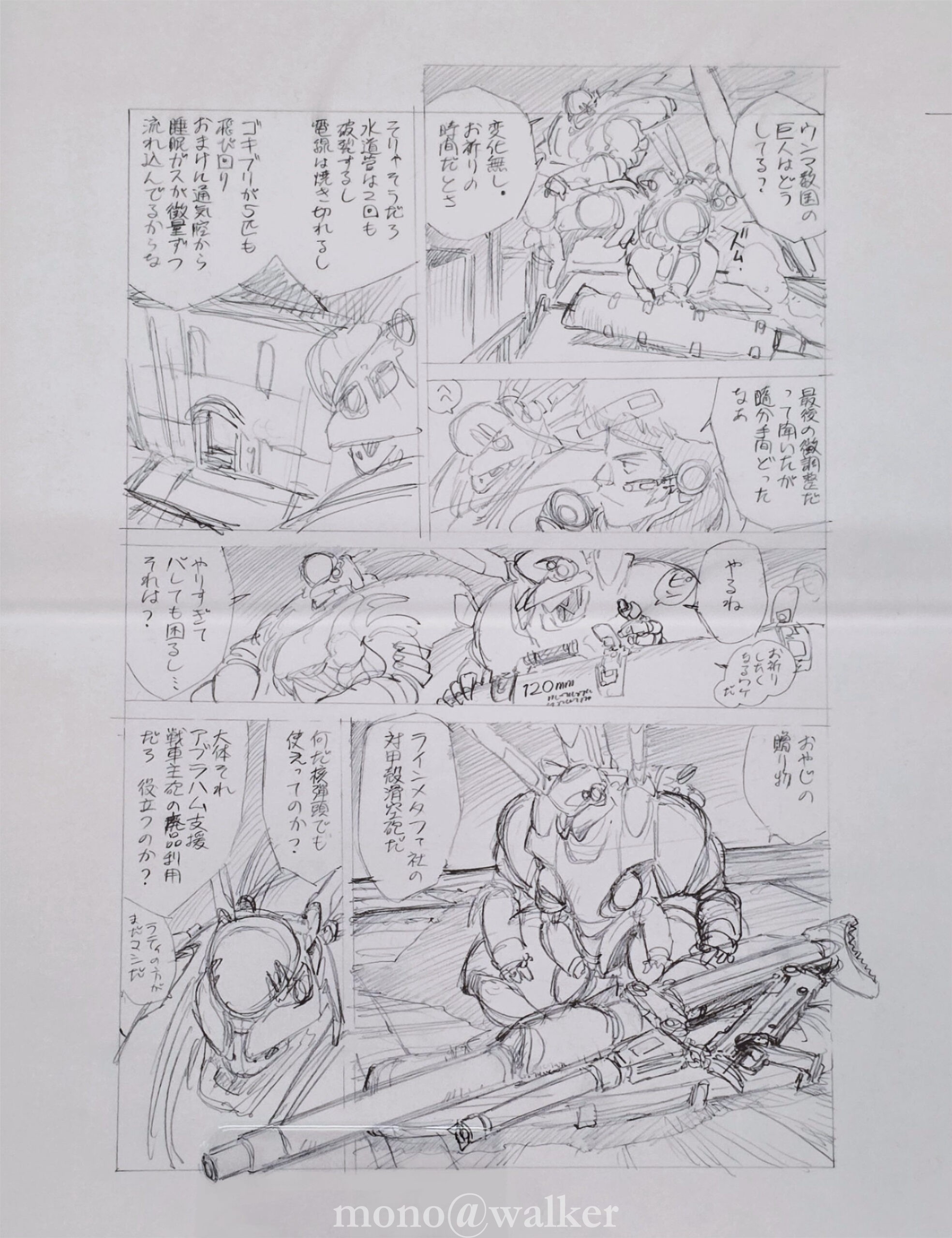 また本人にこだわりがあるのだとおもいますが、メカや乗り物に関してはワンカットのものであっても、考えて描かれています。一口にこだわりだと言うのは簡単ですが、楽しさと大変さが同居した作業だろうなと思います。