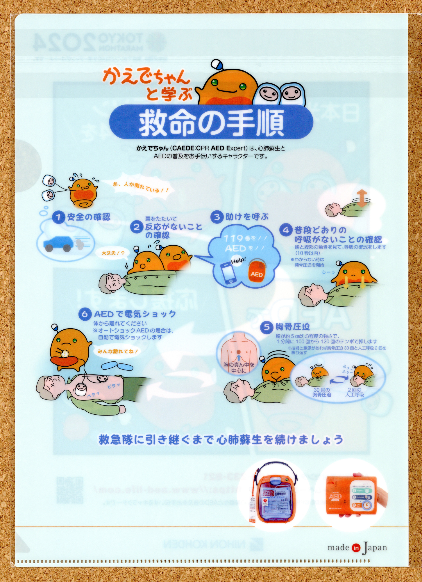 クリアファイルの裏側にも「救急の手順」が載っています。
