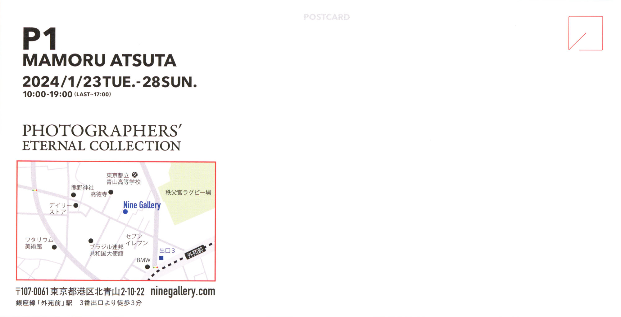 向ったのはNine Gallery(ナインギャラリー)です。初めて行った場所なのですが本来は東京メトロ銀座線の外苑前が最寄り駅(ここからなら5分ほど)ですが、交通費を節約して私は原宿駅から歩きました。どうでしょうね、探しながらだったので行きは30分くらいかかりました。