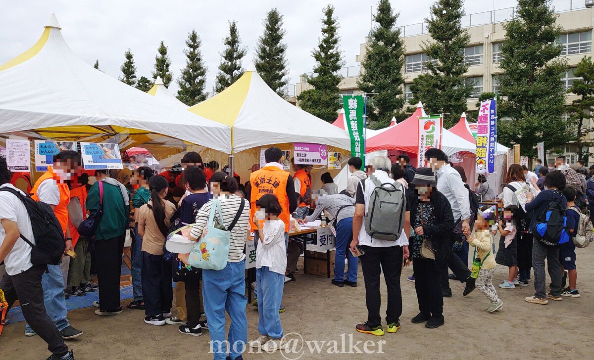 まつり自体は10時開始で小学校に着いたのが10時40分くらいだったと思うのですがが、どこもテントは人だかりで飲食系は長い列になっているところもありました。