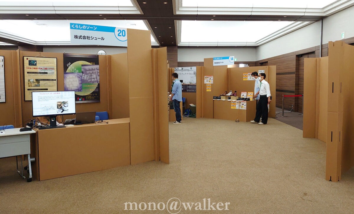 それぞれの展示内容もさることながら私の目に留まったのが、段ボール製の組み立てられた展示ブースでした。