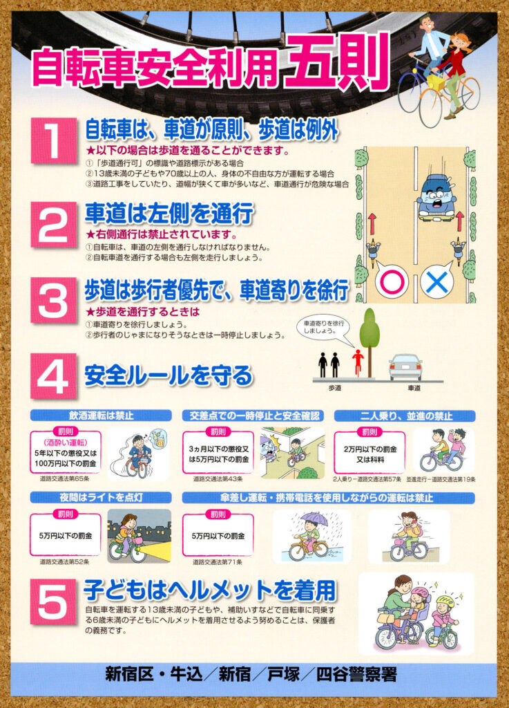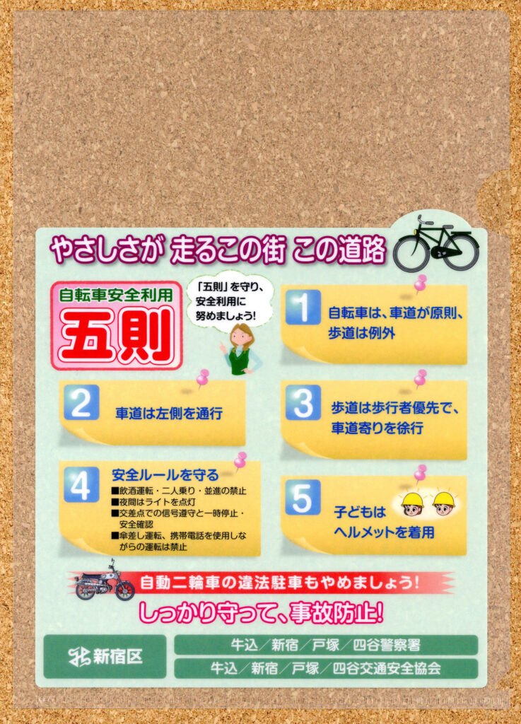 今回紹介するのは新宿区が制作したもので『 自転車安全利用 五則 』という本当にまじめなものです。